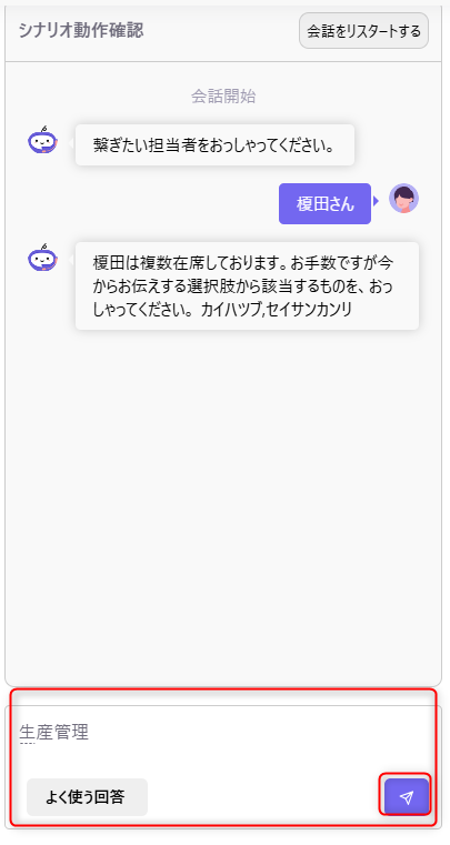 3)最下部にチャットボックスが表示されるため、文字を入力してフローをチェック可能です。
