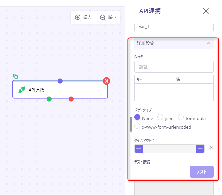 HTTPのリクエストメソッドを指定します。GET、POST、PUT、DELETEから選択可能です。