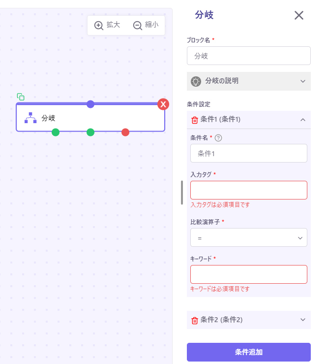 ※分岐ブロックはPRO・旧プラン(スタンダード・フリー)のみご利用可能です。※2025年10月1日以降、BASICプランでもご利用が可能となります。