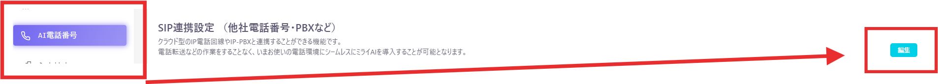 2)「SIP連携設定」>右側水色「編集」をクリック