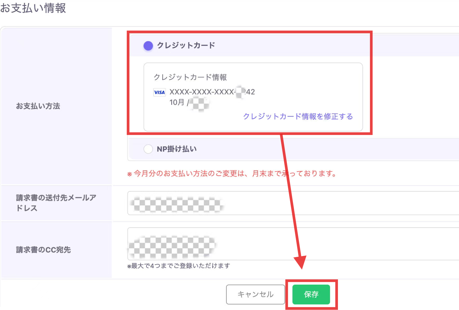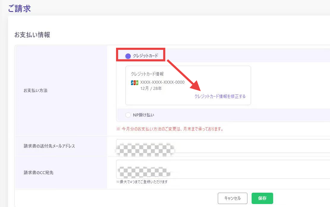 ※お支払いカード変更タイミング: